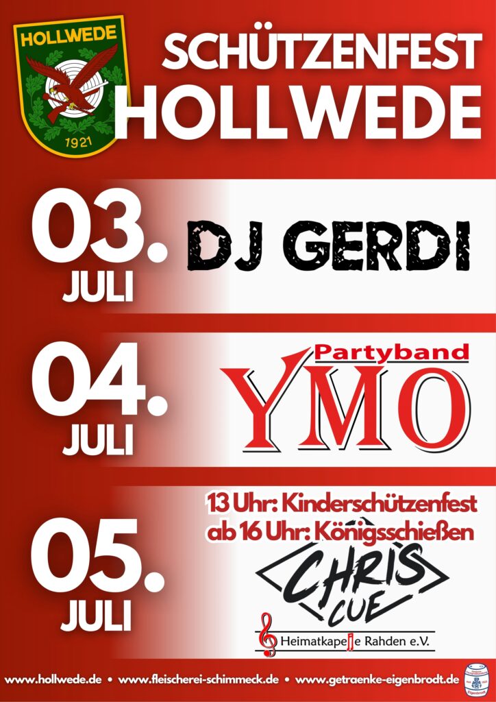 Am Samstag, dem 24. Januar 2026, findet die Jahreshauptversammlung des Schützenvereins Hollwede statt. Beginn der Versammlung ist um 20.00 Uhr im Jägerheim in Hollwede. Hierzu sind alle Vereinsmitglieder herzlich eingeladen.